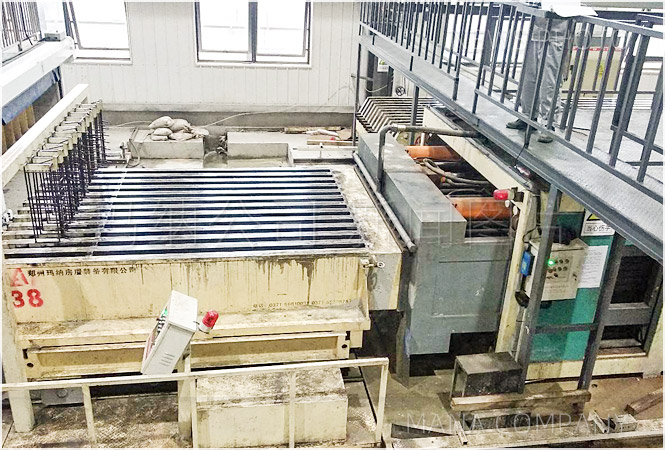 4. 注料:攤鋪成型機、清洗機、90mm上成型機構(gòu)、上成型移位機