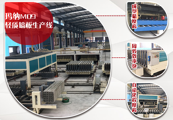 針對輕質(zhì)隔墻板加工生產(chǎn)過程中出現(xiàn)的勞動強(qiáng)度大,生產(chǎn)成本高,沒有實(shí)現(xiàn)自動化生產(chǎn)及存在安全隱患等問題,瑪納公司提供一種全自動輕質(zhì)隔墻板生產(chǎn)線M09輕質(zhì)墻板生產(chǎn)線,新型輕質(zhì)隔墻板設(shè)備價(jià)格?瑪納生產(chǎn)線投資幾十萬到幾十萬不等,該生產(chǎn)線是在瑪納研制的機(jī)動成組立模墻板成型工藝的基礎(chǔ)上,經(jīng)過技術(shù)升級創(chuàng)新,研制出的新型輕質(zhì)墻板生產(chǎn)線,該生產(chǎn)線具有質(zhì)量可靠,投資回報(bào)率高,能夠?qū)崿F(xiàn)自動化生產(chǎn),節(jié)約了大量人力物力,避免了輕質(zhì)隔墻板加工生產(chǎn)過程中出現(xiàn)的勞動強(qiáng)度大,生產(chǎn)成本高,沒有實(shí)現(xiàn)自動化生產(chǎn)及存在安全隱患等問題。