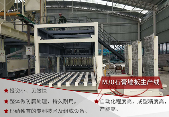 MANA石膏墻板生產線是在瑪納公司20多年研制的機動成組立模墻板成型工藝基礎上,結合國內石膏墻板生產經驗及材料特性,經過技術創(chuàng)新研制出的新型、高效墻板生產線。生產線具有投資小,見效快,配置靈活,自動化程度高等特點。