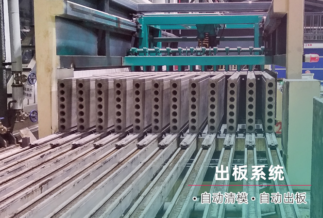 3) 推板清模機:一次性將立模機內(nèi)的12塊墻板推出,并能自動將立模隔板清理干凈。