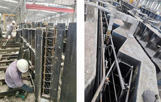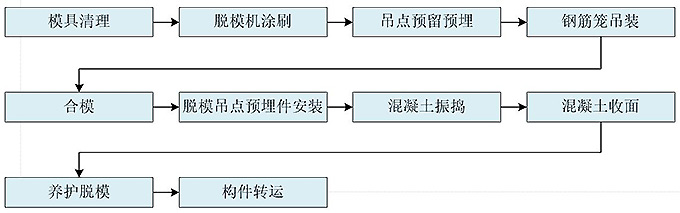 預(yù)制樓梯采用定制模具進行生產(chǎn),生產(chǎn)流程如下: