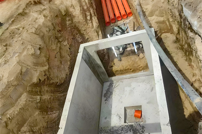 工藝流程:井預(yù)制 - 放樣 - 基坑開(kāi)挖 - 墊層施工 - 運(yùn)輸 - 吊裝 - 防水處理