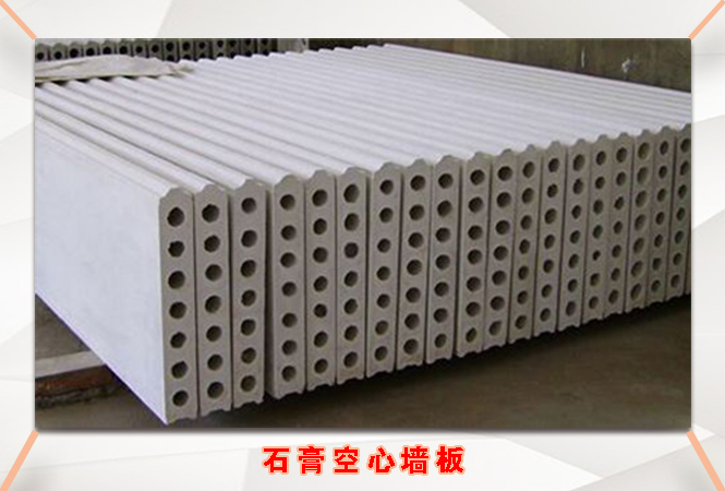 石膏空心墻板是以天然石膏或化學石膏為主要原料,經破碎、粉磨、煅燒而成熟石膏,摻假適量的水,并摻入一定量的粉煤灰或水泥,再加入少量增強纖維(或配置玻纖網格布),并加進適量膨脹珍珠巖作為輕質骨料,經拌合成料漿,澆注入模成型,再經初凝、抽芯、干燥等工序而制成空心條板。