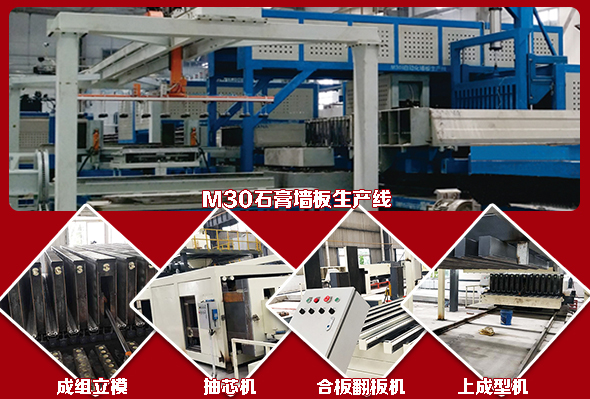M30石膏墻板生產(chǎn)線:成組立模,抽芯機(jī),合板翻板機(jī),上成型機(jī)