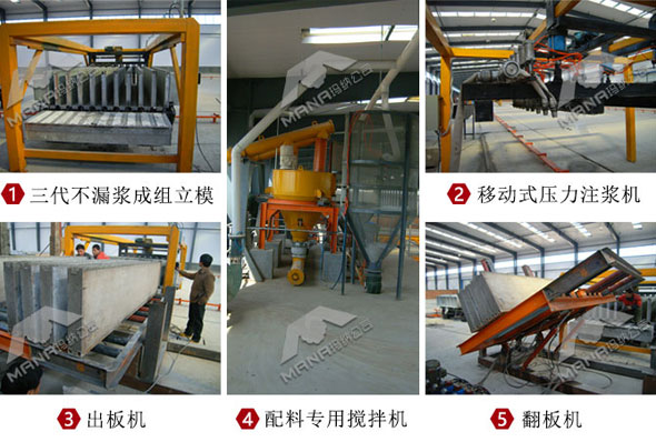 M08復合夾芯保溫墻板生產(chǎn)線主要設(shè)備:第三代不漏漿成組立模/壓力注漿機/配料專用攪拌機/出板機/翻板機
