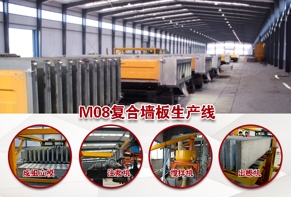 作為新型墻體材料的新型復(fù)合墻板優(yōu)點確實很多,近年來也是很受投資者的青睞,所以要投資就必須要選擇合適的新型復(fù)合墻板設(shè)備,那新型復(fù)合墻板生產(chǎn)設(shè)備哪家好?新型復(fù)合墻板設(shè)備多少錢呢?瑪納公司經(jīng)過5年研究,專門針對新型復(fù)合墻板開發(fā)了M08復(fù)合墻板生產(chǎn)線,該生產(chǎn)線主要用來滿足大規(guī)模生產(chǎn)用戶需求,重點采用壓力注料、墻板封閉成型、纖維面板自動植入及自動出板等先進(jìn)技術(shù),實現(xiàn)工業(yè)化生產(chǎn)。