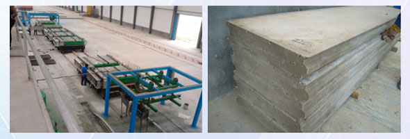 整個(gè)過(guò)程:配料→攪拌→置板→壓力輸送→澆注入!B(yǎng)護(hù)→開(kāi)!霭鍣C(jī)出板→循環(huán)