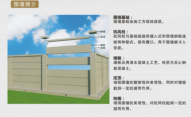 水泥圍墻條板寬0.5m-0.6m,長3m-4m,厚60mm-150mm,其他規(guī)格也可定制。
